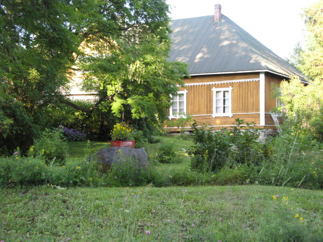 Ensimmäinen pysähdyspaikka on vajaa kaksi kilometriä lähdöstä, Plevnan talon pihapiiri. Saamme lyhyehkön tiedoksiannon talon historiasta ja kuulemme erään tapausselostuksen. Arja Marttala on luvannut aamukahvit. IMG_3149[1]
