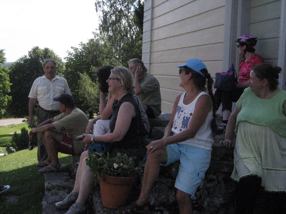 Eikö muuta? Toki. Pysädyimme kotiseutuneuvoksen opastamana reitin varteen osuneisiin kultturikohteisiin. Päijälän rukoushuone, Vanha-Puolamäen kotiseutumuseo, Kuhmoistenkirkko,