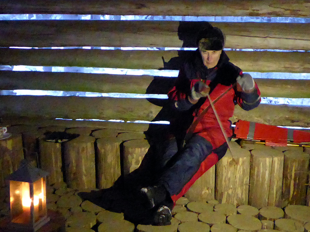 Ylittämätön kulttuurielämys oli 15 asteen pakkasessa soinut saha. Timo hämmästytti kaikki saamalla sahan soimaan rukkaset kädessä. Hämärtyvässä illassa soinut Maa on niin kaunis loi tunnelman, jota ei edes kylmä glögi lannistanut.