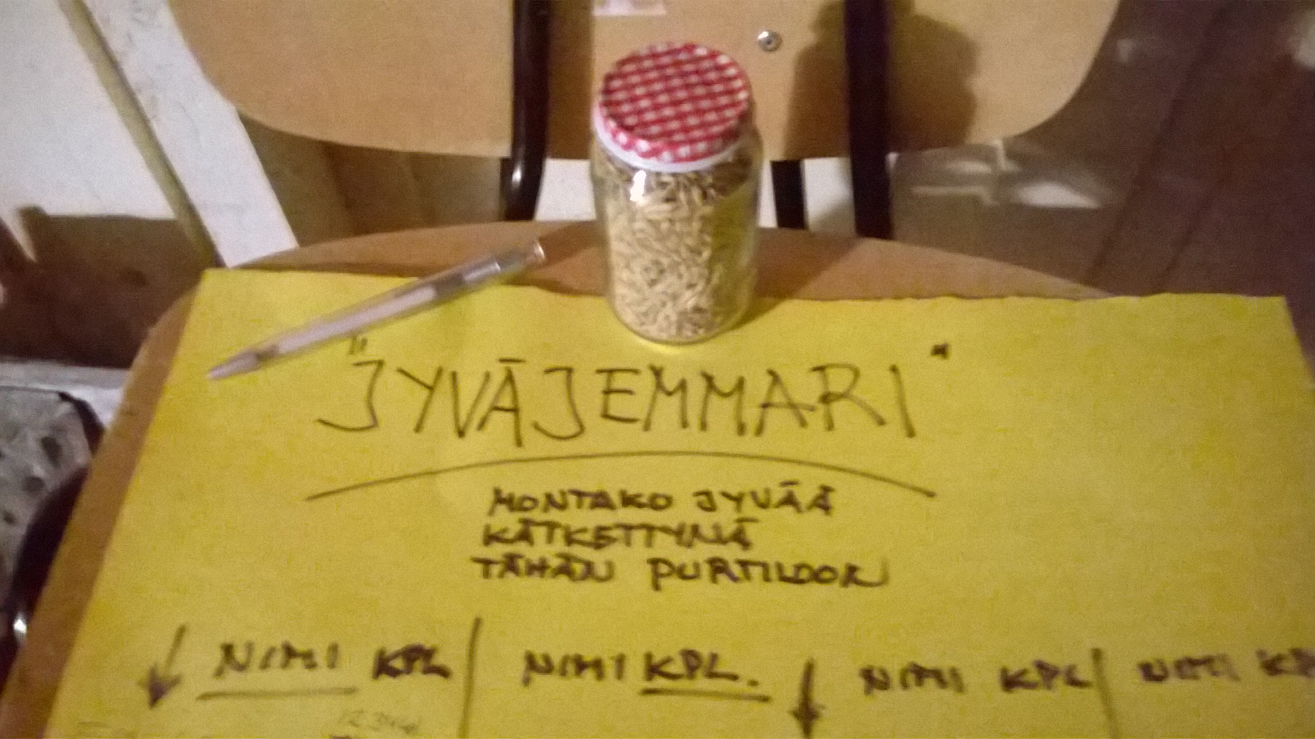 Kilpailujakin oli, kuten illan teemaan hyvin sopiva jyvien määrän arvonta.